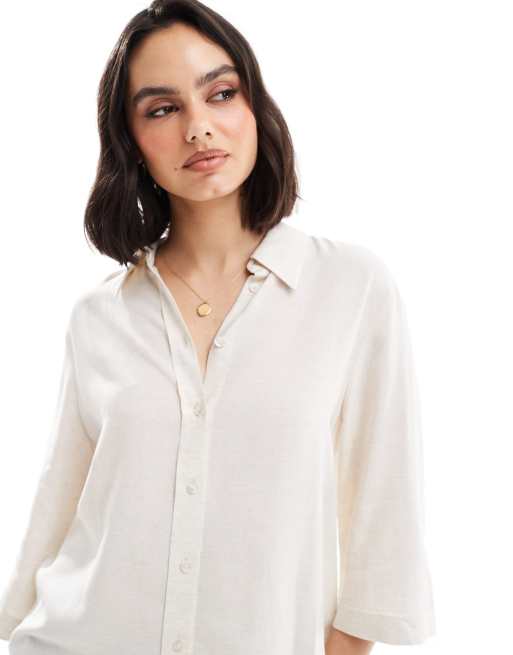 ASOS DESIGN – Koszula o luźnym fasonie z imitacji lnu w naturalnym kolorze
