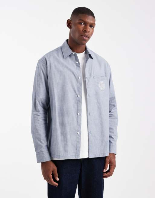 ASOS DESIGN – Koszula o luźnym kroju w niebieską kratkę z haftowanym wzorem na piersi