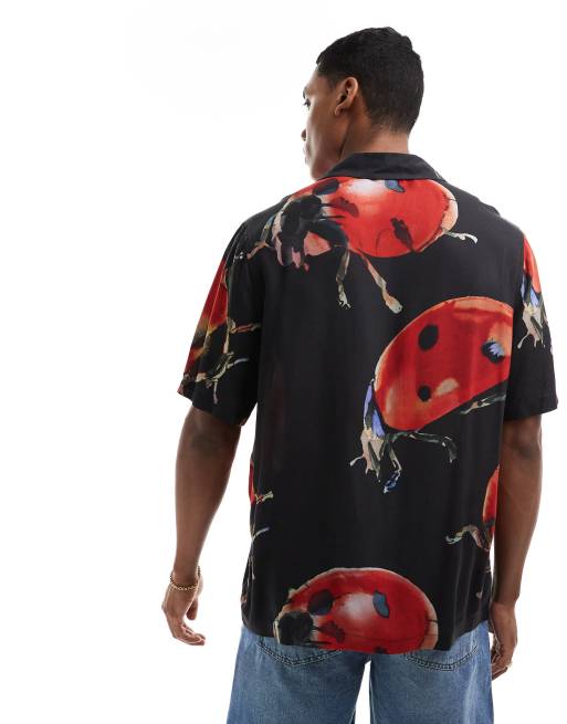 ASOS DESIGN – Koszula o luźnym kroju z kołnierzykiem kubańskim z nadrukiem w biedronki