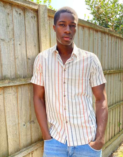 ASOS DESIGN – Koszula o regularnym kroju z imitacji lnu w tęczowe paski