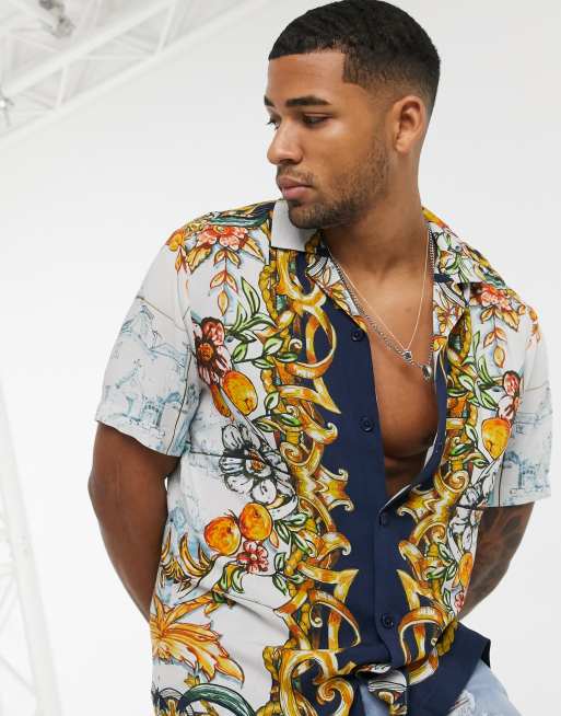 ASOS DESIGN – Koszula o regularnym kroju z ręcznie narysowanym wzorem owoców na brzegu