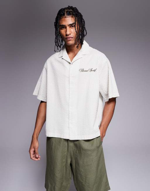 ASOS DESIGN – Koszula oversize o pudełkowym kroju z kory w szałwiowe paski