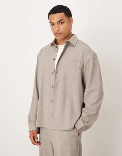 ASOS DESIGN – Koszula oversize o pudełkowym kroju ze szczotkowanego diagonalu w neutralnym kolorze