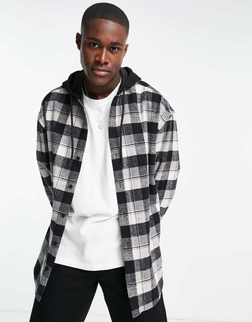 ASOS DESIGN – Koszula oversize w kratę w stylu lat 90. z dżersejowym kapturem