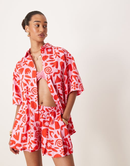ASOS DESIGN – Koszula oversize z krótkimi rękawami w artystyczny wzór, część zestawu