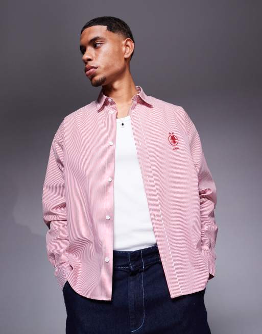 ASOS DESIGN – Koszula w paski oversize o pudełkowym kroju z haftowanym wzorem na piersi
