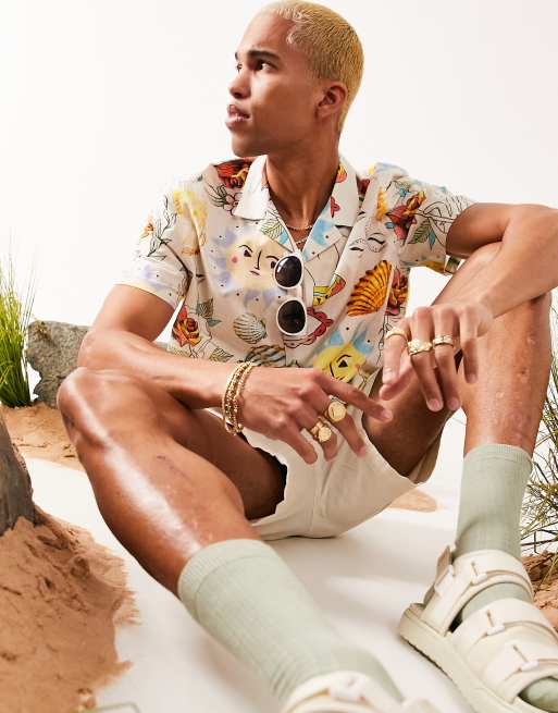 ASOS DESIGN – Koszula z domieszką lnu o luźnym kroju z kolorowymi rysunkami