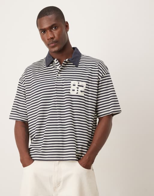ASOS DESIGN – Koszulka polo o pudełkowym kroju oversize w czarno-białe paski