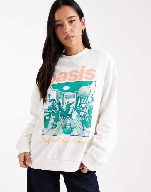 ASOS DESIGN – Kremowa bluza oversize z licencjonowaną grafiką albumu „Definitely Maybe“ zespołu Oasis
