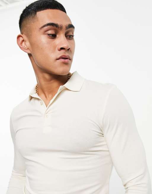 ASOS DESIGN – Kremowa koszulka polo z długimi rękawami