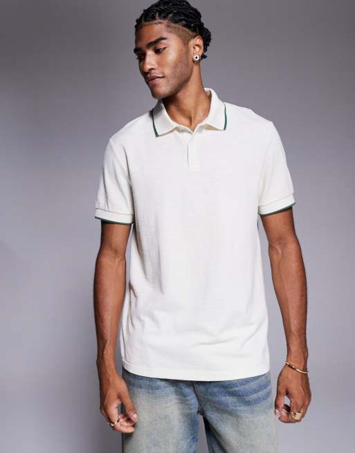 ASOS DESIGN – Kremowa koszulka polo z kontrastową lamówką