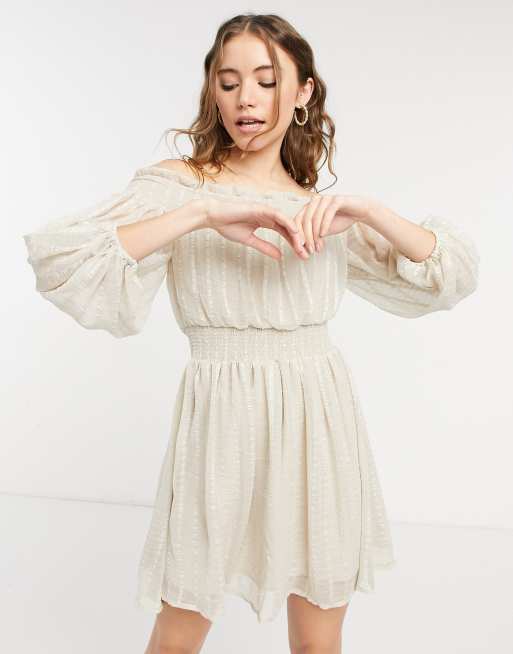 ASOS DESIGN – Kremowa sukienka mini z odkrytymi ramionami i luźnymi rękawami