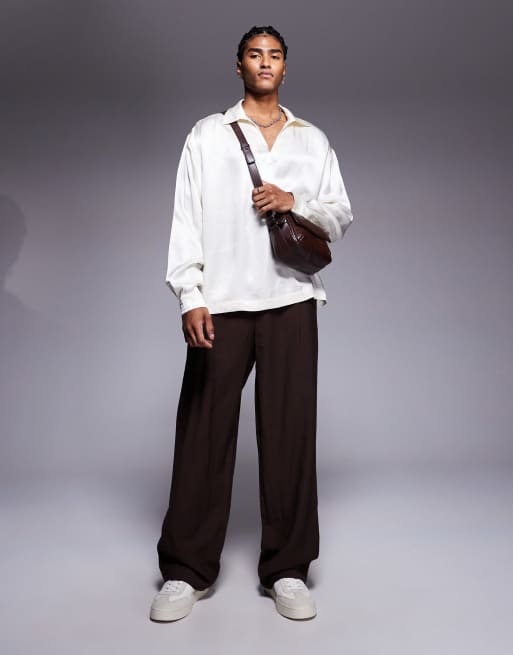 ASOS DESIGN – Kremowa, zakładana przez głowę koszula satynowa o pudełkowym kroju oversize
