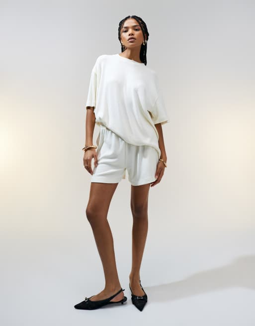 ASOS DESIGN – Kremowe szorty z fakturowanej dzianiny, część zestawu