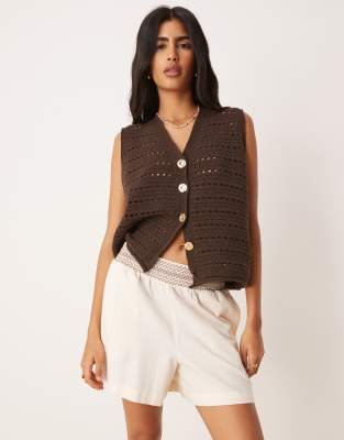 ASOS DESIGN – Kremowe szorty z marszczoną talią z brązowymi detalami