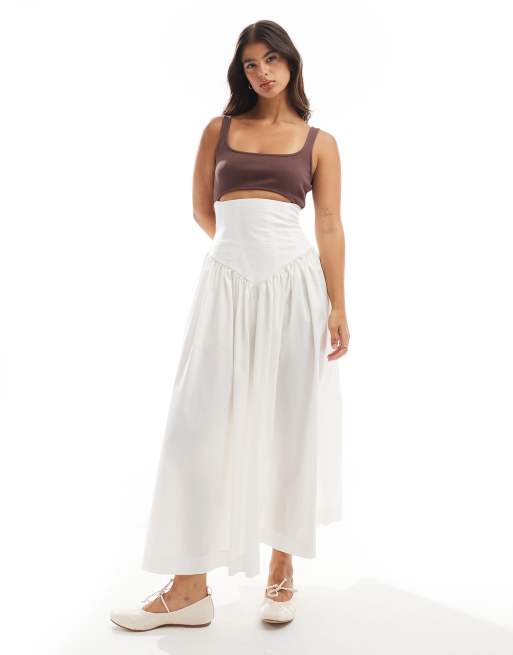 ASOS DESIGN – Kremowo-czekoladowa gorsetowa sukienka midi z dżersejową górą