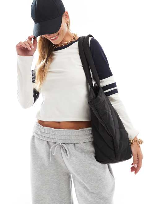 ASOS DESIGN – Kremowo-granatowy T-shirt z długimi reglanowymi rękawami