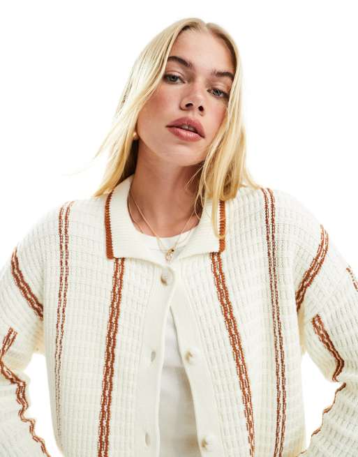 ASOS DESIGN – Kremowo-ruda dzianinowa koszula z kołnierzem w pionowe pasy