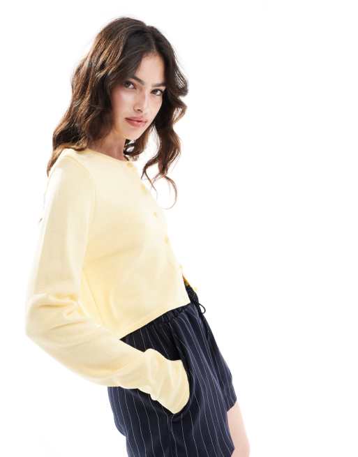 ASOS DESIGN – Kremowy dzianinowy kardigan o krótkim fasonie z okrągłym dekoltem