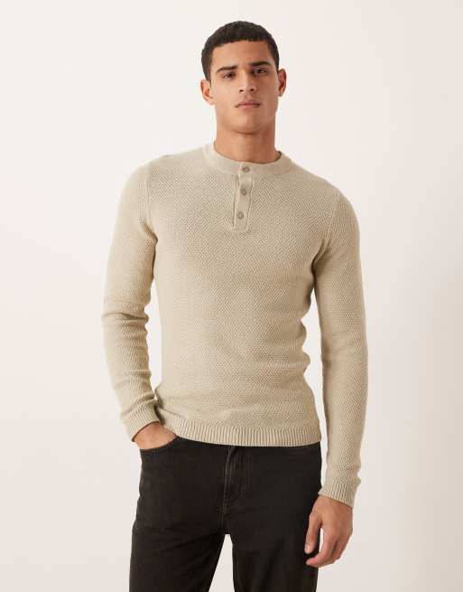 ASOS DESIGN – Kremowy dzianinowy sweter o kroju podkreślającym sylwetkę z dekoltem henley