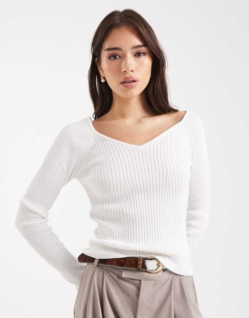 ASOS DESIGN – Kremowy dzianinowy top z dekoltem w kształcie litery V
