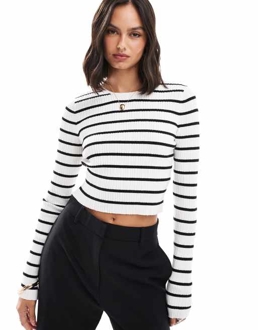 ASOS DESIGN – Kremowy dzianinowy top z długimi rękawami i okrągłym dekoltem w paski
