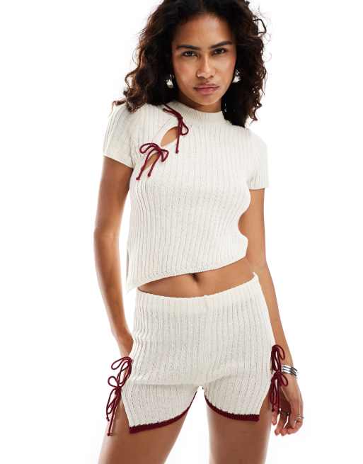 ASOS DESIGN – Kremowy dzianinowy top z ozdobnymi kokardkami, część zestawu