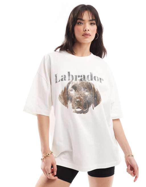 ASOS DESIGN – Kremowy gruby T-shirt o fasonie boyfriend z grafiką z labradorem