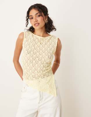 ASOS DESIGN – Kremowy koronkowy asymetryczny top z marszczeniem z boku