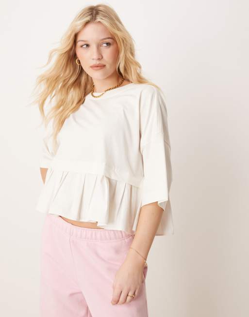 ASOS DESIGN – Kremowy krótki T-shirt z popelinową baskinką