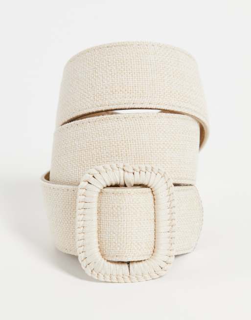 ASOS DESIGN – Kremowy pasek z teksturowaną kwadratową klamrą na pas i biodra