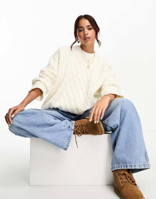 ASOS DESIGN – Kremowy sweter oversize o splocie warkoczowym