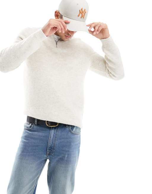 ASOS DESIGN – Kremowy sweter z puszystej dzianiny z suwakiem pod szyją