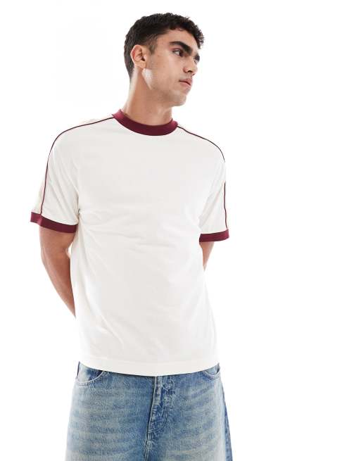 ASOS DESIGN – Kremowy T-shirt o luźnym kroju z kontrastowymi detalami
