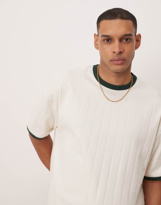 ASOS DESIGN – Kremowy T-shirt oversize o pudełkowym kroju w szerokie prążki