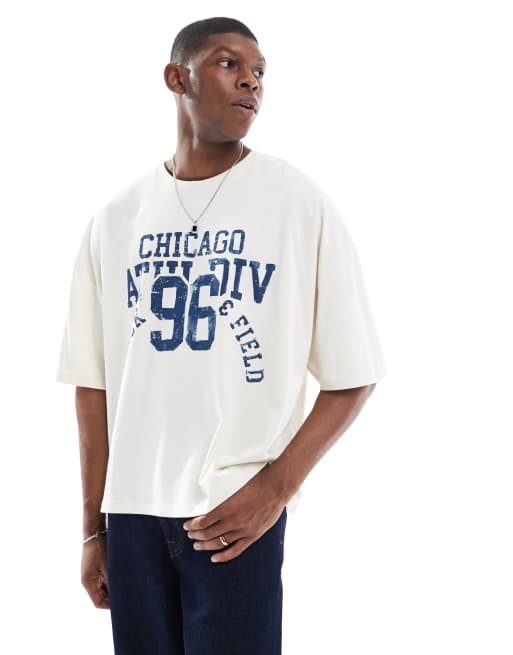 ASOS DESIGN – Kremowy T-shirt oversize o pudełkowym kroju ze sportową grafiką