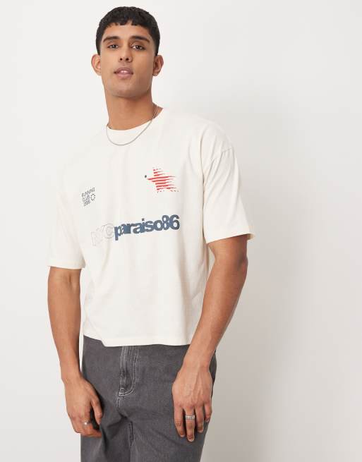 ASOS DESIGN – Kremowy T-shirt oversize o pudełkowym kroju ze sportową grafiką