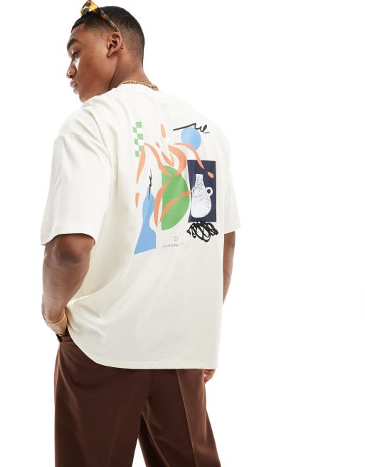 ASOS DESIGN – Kremowy T-shirt oversize z abstrakcyjnym nadrukiem na plecach