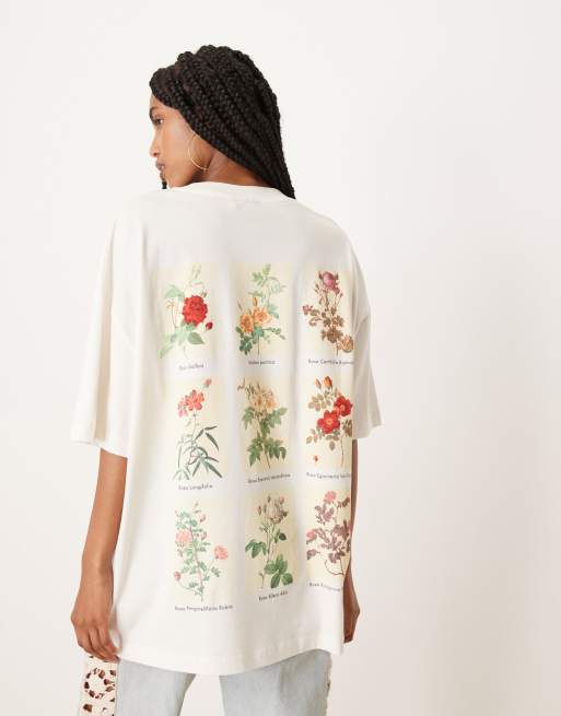 ASOS DESIGN – Kremowy T-shirt oversize z grafiką z motywem kwiatów