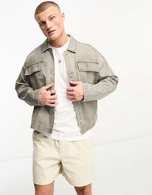 ASOS DESIGN – Krótka kurtka oversize w kowbojskim stylu w spranym szarym kolorze