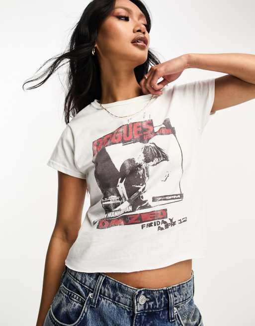 ASOS DESIGN – Krótki biały T-shirt z grafiką Rogues Indie