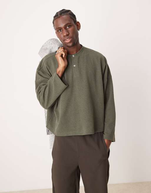 ASOS DESIGN – Krótki gruby sweter extreme oversize ze szczotkowanej prążkowanej dzianiny w kolorze khaki