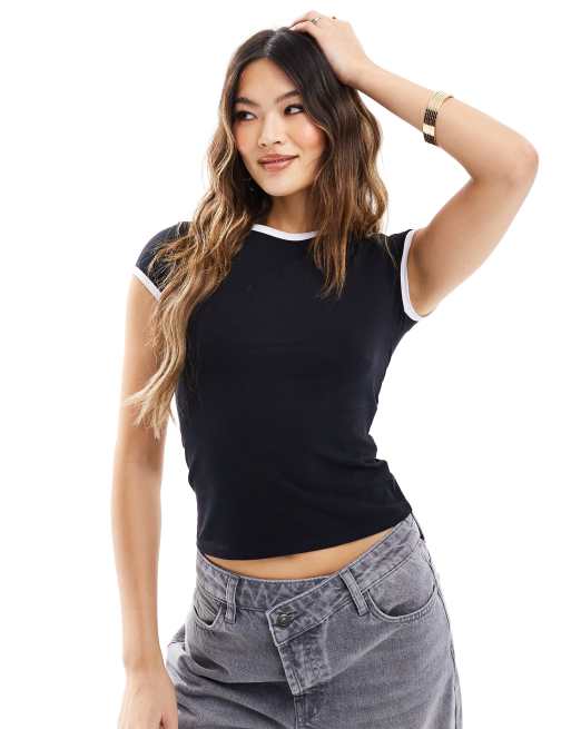 ASOS DESIGN – Krótki i obcisły T-shirt w kolorze czarnym z kontrastową lamówką