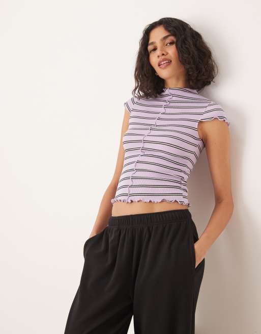 ASOS DESIGN – Krótki i obcisły top ze skośnymi rękawkami, ozdobnymi szwami i zabudowanym dekoltem w paski