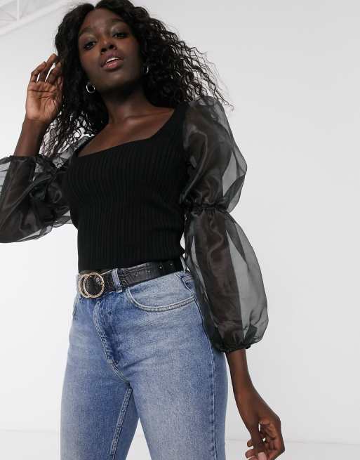 ASOS DESIGN – Krótki sweter z kwadratowym dekoltem z rękawami z organzy