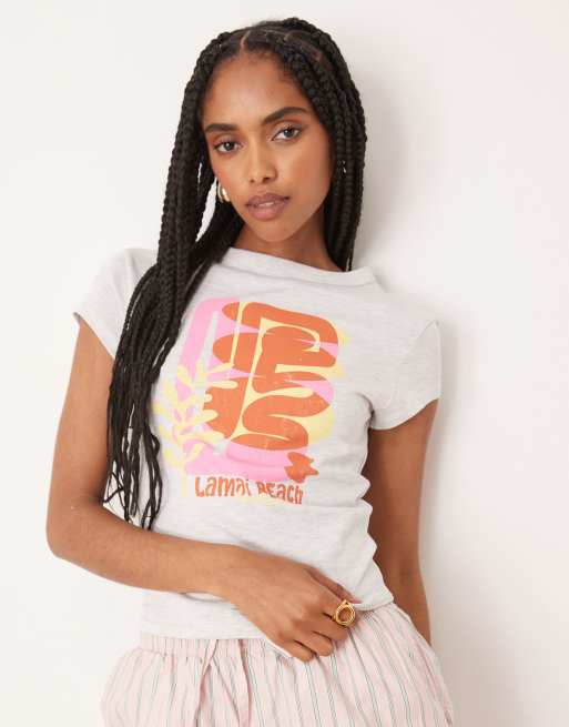 ASOS DESIGN – Krótki T-shirt w jasnoszarym melanżowym kolorze z abstrakcyjną artystyczną grafiką