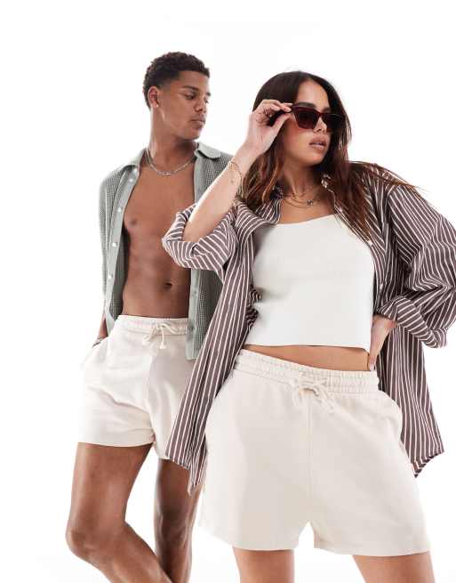 ASOS DESIGN – Krótkie dopasowane szorty unisex w kolorze spranego beżu