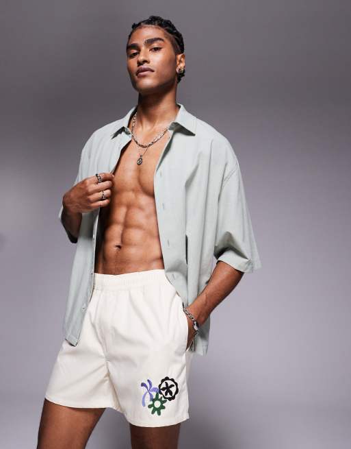 ASOS DESIGN – Krótkie szorty kąpielowe w neutralnym kolorze z haftem