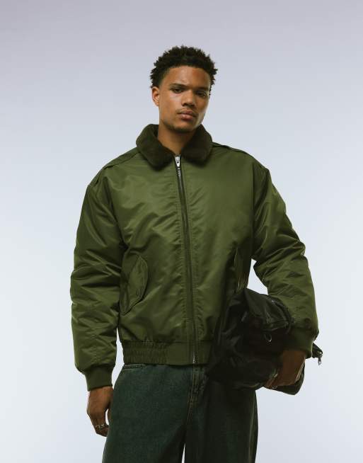 ASOS DESIGN – Kurtka bomberka w kolorze khaki z kołnierzem ze sztucznego futra