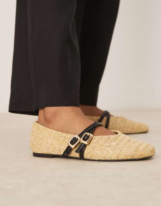 ASOS DESIGN – Landon – Plecione balerinki Mary Jane w naturalnym kolorze z dwoma paskami